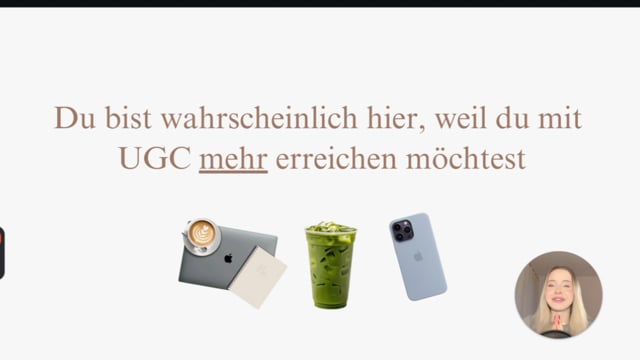Videos, die verkaufen. Das hier ist kein „werde schnell reich“-Kurs mit leeren Versprechen wie „du bekommst Gratisprodukte und wirst dafür bezahlt“. Dieser Kurs bringt dir bei, wie du BRANDS HILFST, MEHR ZU VERKAUFEN. Das ist das #1 Ziel — und der einzige Grund, warum manche UGC Creatorinnen Tausende pro Projekt verdienen.